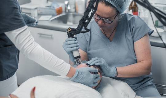 1. Konzultace a diagnostika pleti – lékař zhodnotí pevnost pleti, strukturu a doporučí optimální hloubku ošetření.