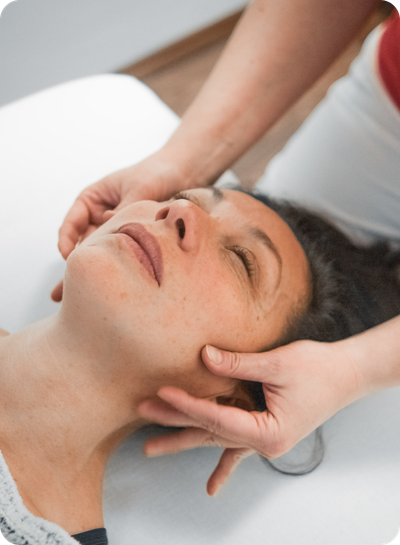 • Masér používá speciální hmaty, které optimalizují napětí svalů obličeje a podporují liftingový efekt